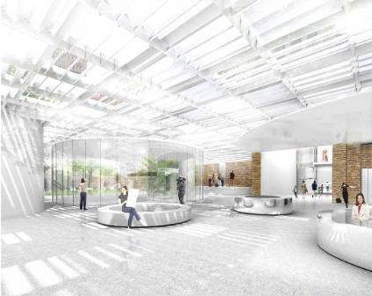 L’accueil du public, les ateliers pédagogiques ou encore l’auditorium (200 places) se trouvent ainsi « incrustés dans le sol », en connexion avec le palais Dobrée. Ces espaces fonctionnels sont en contact visuel avec la surface via un « plafond de verre ». Celui-ci « se double d’un dispositif d’opacification, d’isolation et de filtration qui apporte un réel confort visuel et thermique à cette partie du musée », précise l’agence conceptrice. En surface, le verre se veut « miroitant comme de l’eau » pour refléter les architectures du musée. Un phénomène qui pourra être observé d’ici 2015, à la livraison de l’opération.