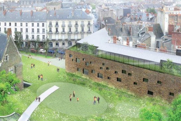 Le jury a notamment basculé en faveur du projet Perrault pour sa réponse originale à un enjeu de poids : la valorisation du patrimoine bâti qui comprend le palais Dobrée (4.208 m2, XIXe siècle) et le manoir de La Touche (957 m2, XVe siècle) ainsi que son environnement proche : le parc d’un hectare. Outre la rénovation de ces bâtiments en pôle « exposition », l’agence Dominique Perrault Architecture propose une extension souterraine pour y loger le pôle « médiation ».