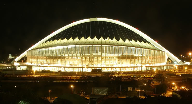 Inauguré le 29 novembre 2009 par une rencontre du championnat d’Afrique du Sud de football, Le « Moses Mabhida Stadium » possède une architecture qui s’inspire directement du drapeau sud africain. Il est surplombé par une grande arche qui symbolise l’unité de toute la nation passionnée par le sport. les deux pieds de l’arche du côté sud du stade se rejoignent pour ne former qu’un seul et unique pilier sur le côté nord, afin de symboliser l’unité retrouvée d’une nation autrefois divisée.