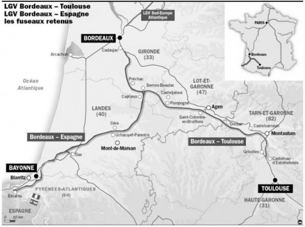 Hier, des responsables d’associations de défense manifestaient encore devant la préfecture girondine. La Depeche.Fr nous apprend également qu’entre Montauban et Toulouse, 240 hectares de surfaces cultivées ainsi que 40 exploitations seront impactés.