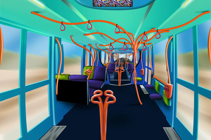A l’intérieur, les barres de maintien des voyageurs ressemblent à des barres de corail…