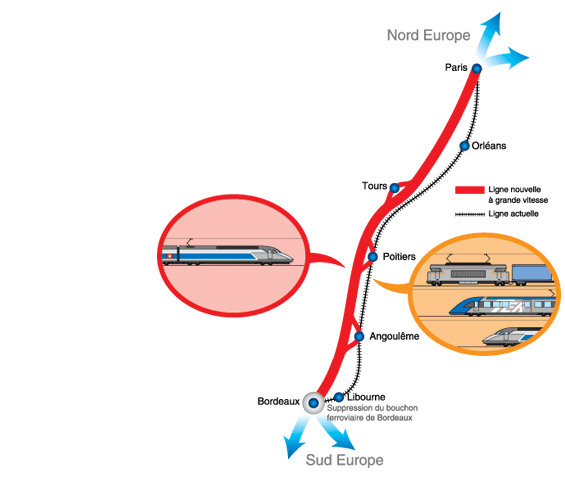 Ce nouveau tronçon long de 303 km (auxquels s’ajoutent 38 km de raccordements aux lignes classiques) s’inscrit dans le prolongement de la ligne Paris-Tours existante, il doit mettre Bordeaux à deux heures et cinq minutes de Paris fin 2016. Les travaux doivent démarrer fin 2011.