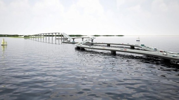 Parfois, les solutions les plus simples sont les meilleures. Alors que des ouvrages existent déjà et répondent à cet épineux problème sur terre, la solution proposée par les Néerlandais envisage d’effectuer le changement de voie directement sur les flots, dans une belle vrille routière. Malgré son intérêt et le mélange qu’il a su faire entre usage et forme, le projet présenté par NLA n’a cependant pas été sélectionné. Dommage, il aurait été intéressant de voir un tel ouvrage à l’oeuvre.