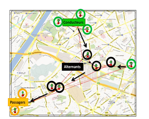En fonction, de leurs besoins, les salariés passeront d’une grappe à l’autre. Ils pourront choisir d’être conducteur un jour, passager le lendemain ou interroger le système qui proposera la meilleure solution au cas par cas, afin qu’en une période donnée, le maximum de personnes puissent covoiturer ensemble.