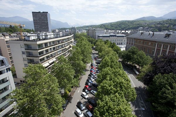 Vue aérienne de l’axe de la Leysse dans le centre de Chambery. Sous les voitures, un cours d’eau (Crédit photo : Chambéry Métropole)