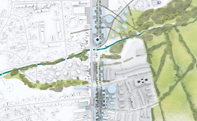 La forme du plan d’aménagement, qui accompagne l’extension du tramway et modifie son tracé initial pour l’inscrire au cœur du nouveau quartier (et minimiser son impact sur l’existant), dessine une entrée de ville linéaire en trois séquences autour desquelles s’agrégeront l’ensemble des fonctions commerciales, des équipements et des parkings silos. Une organisation qui offre la possibilité, précise Clément Blanchet, de créer un paysage urbain rapide (sur la route de Toulouse) / lent (sur la contre-allée du tramway) et d’entrevoir de nouvelles opportunités pour le développement du logement et de ses typologies. D’ici 2018, environ 900 logements devraient ainsi voir le jour sur le site.