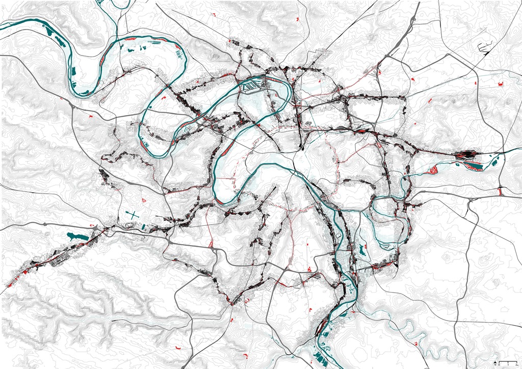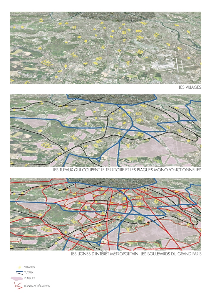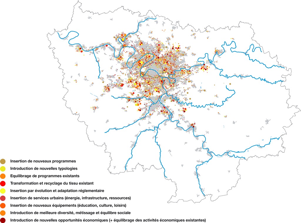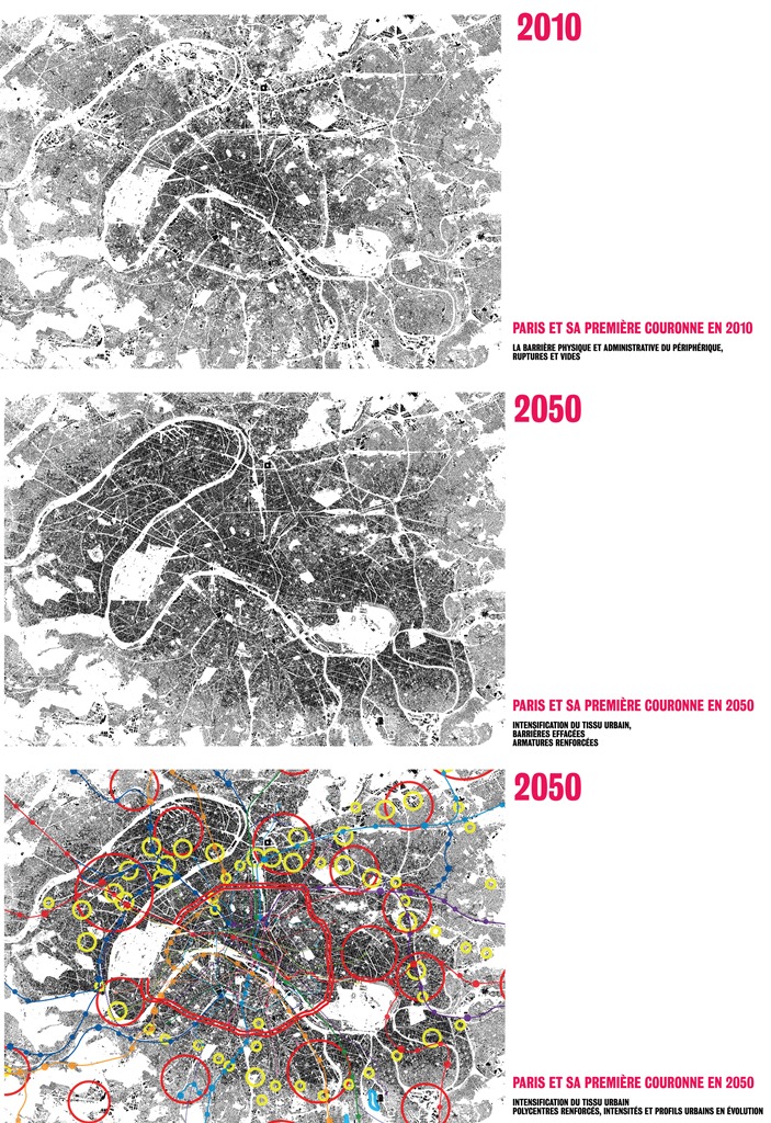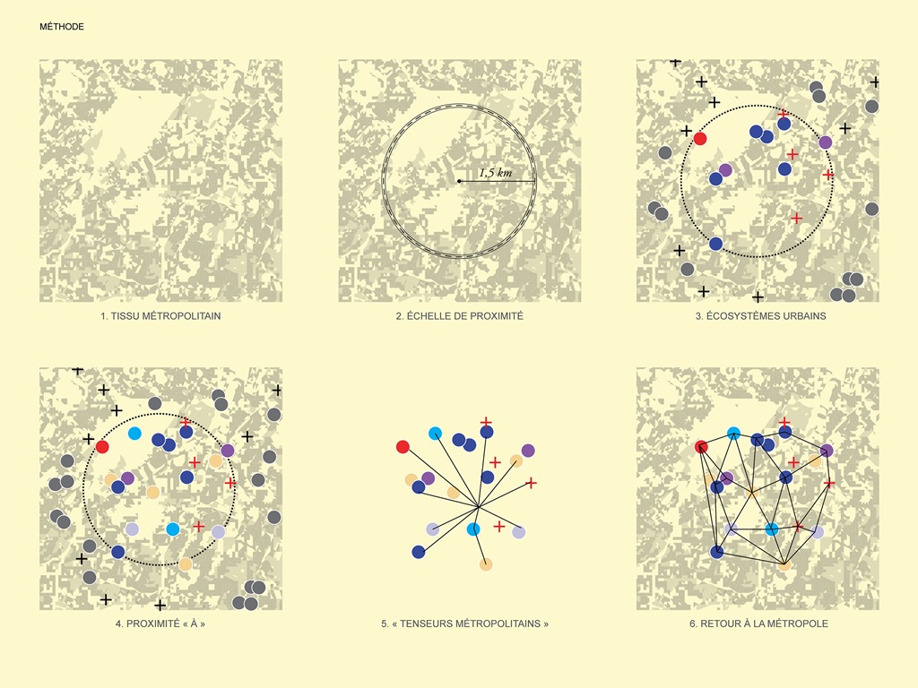 - Mise en tension du tissu métropolitain : méthodologie. Crédits photo : AIGP / DPA, Dominique Perrault architecture
