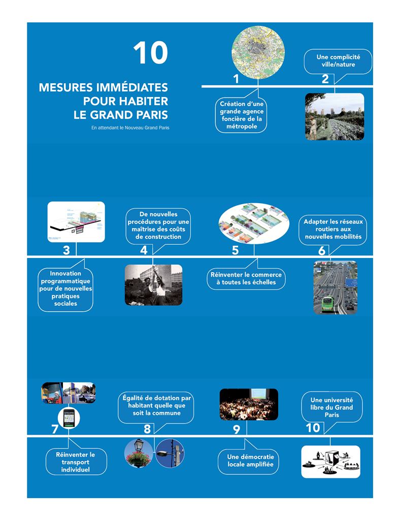 - 10 mesures immédiates pour habiter le Grand Paris. Crédits photos : AIGP / Agence François Leclercq, Atelier Lion & Associés, Agence Marc Mimram