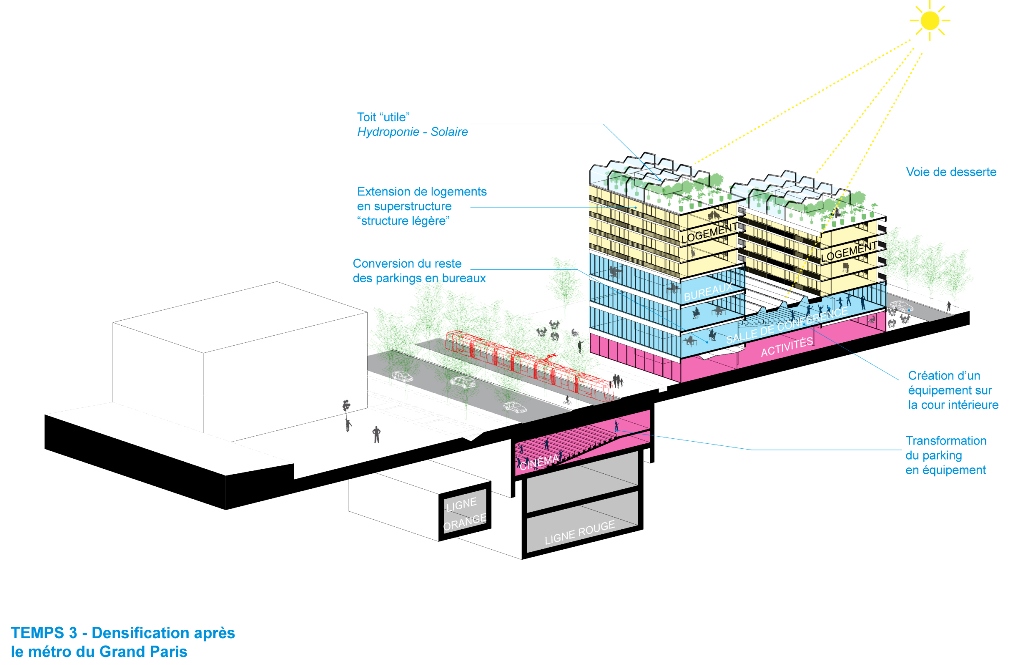 - Densifier à partir des lignes qui maillent la métropole. Crédits photos : AIGP / Agence Elisabeth et Christian de Portzamparc