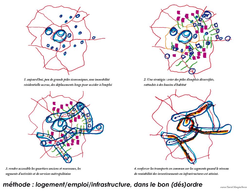 Quelles formes et processus d’intégration et d’échanges avec l’existant ? Comment transformer les grands ensembles, les réseaux autoroutiers, les nappes de parkings, les abords des fleuves … ? Quels programmes spécifiques et quels nouveaux modes de vie promouvoir ? Comment répondre aux exigences du développement durable ? - Quand ? (Les priorités)