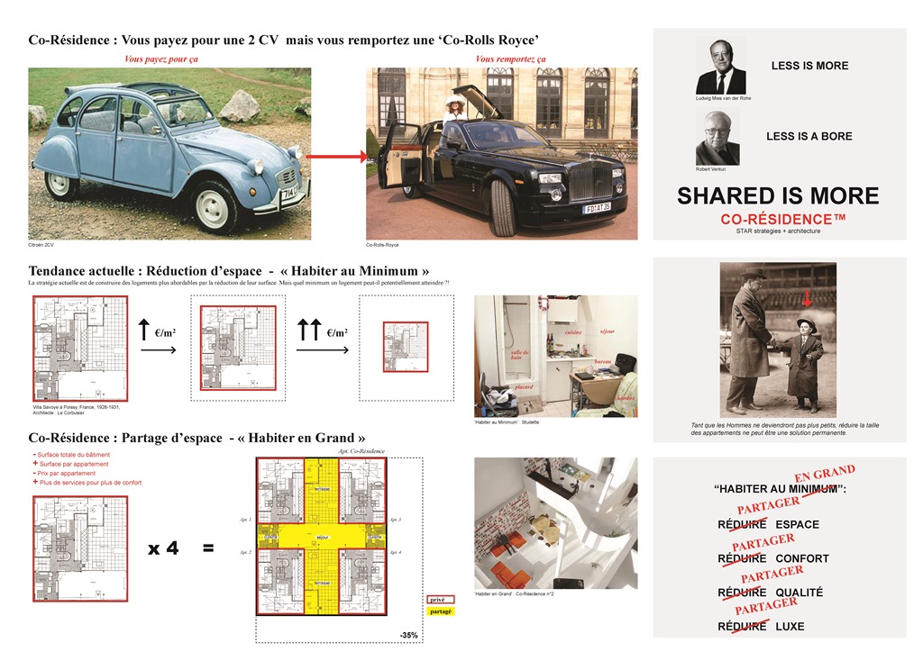 - Stratégie actuelle : REDUIRE l’espace Vs. Stratégie de Co-Résidence : PARTAGER l’espace. Crédits photo : AIGP / STAR Stratégies + architecture