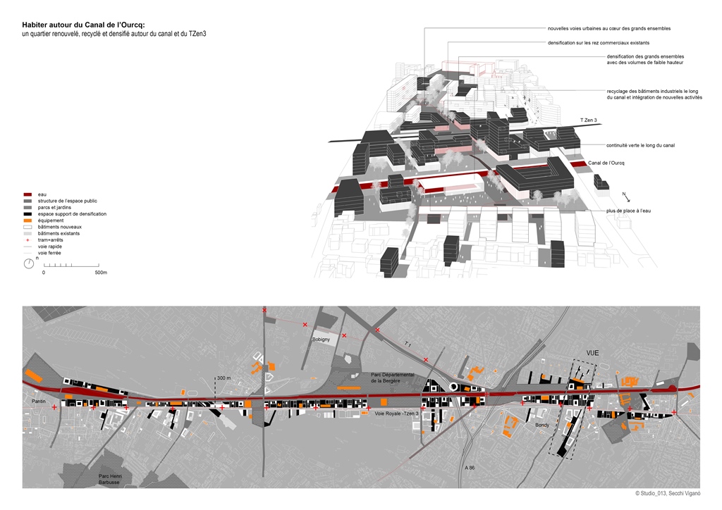 - Projet de renouvellement autour du canal de l’Ourcq et du TZen3 : exercice de recyclage et de densification sur son segment central. Crédits photos : AIGP / Studio_013 Bernardo Secchi et Paola Vigano