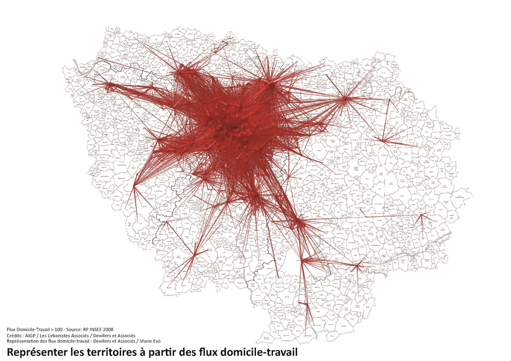 - Redécouvrir les territoires. Visualisation de l’ensemble des flux domicile-travail. Crédits photo : AIGP / Les Urbanistes Associés