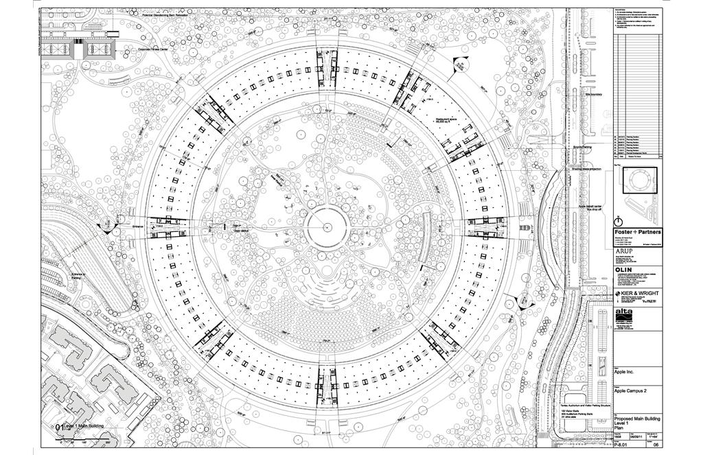 - Plan du rez-de-chaussée du futur campus Apple à Cupertino. Crédits photo : Foster + Partners / ARUP / Kier + Wright / OLIN / Apple