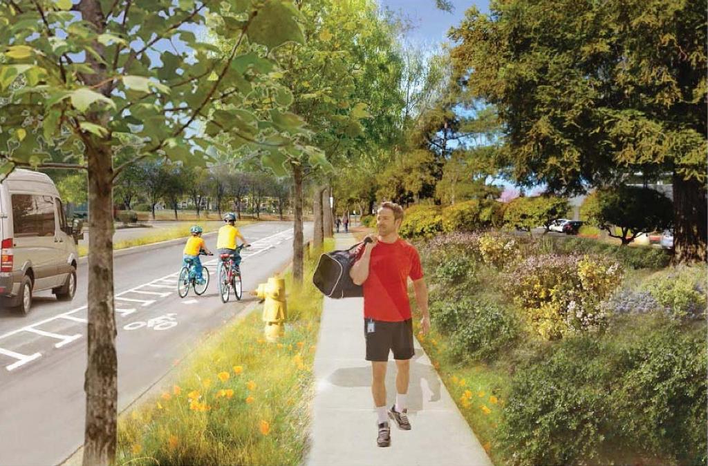 - Plan des aménagements d’accès du futur campus Apple à Cupertino. Crédits photo : Foster + Partners / ARUP / Kier + Wright / OLIN / Apple