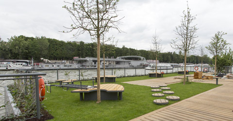 Jardins flottants, gradins, piste d’athlétisme et mur d’escalade aménagés sur les quais de la Seine. http://t.co/Q7A8HPVtWd @Urbanewsfr