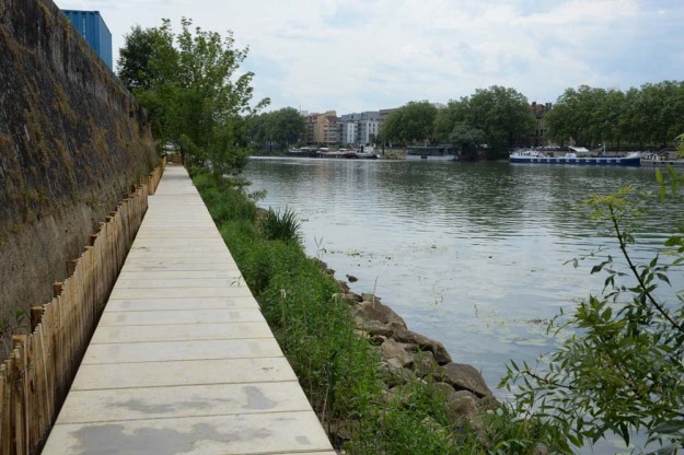 Cette ouverture intervient après quatre années de travaux, fortement perturbés cet hiver par 120 jours de crues. Une autre section de la promenade située en plein cœur de Lyon devrait ouvrir au public d’ici cet automne. Plus au sud, la partie concernant le quartier de la Confluence ne sera elle terminée qu’en 2015. A terme, les rives de Saône s’étendront sur cinquante kilomètres (25 kilomètres de chaque côté) du Val de Saône à la Confluence et traverseront quatorze communes et cinq arrondissements de Lyon.