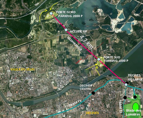 C’est une ligne de 4,7 km, desservant 4 stations qui permettrait de rejoindre les 2 200 hectares de verdure couverts par le Grand Parc depuis Décines en à peine dix petites minutes. Chaque cabine pouvant accueillir 12 personnes, le dispositif permettrait d’acheminer 2 000 personnes par heure, avec un départ possible toutes les 30 secondes. Les jours de grandes affluence – essentiellement lors de la période estivale – le lac du parc accueil aujourd’hui quelques 50 000 « plagistes » et 17 000 véhicules, mais côté transports en commun, une simple navette saisonnière permet de rejoindre le site depuis le pôle d’échange du Carré de Soie.