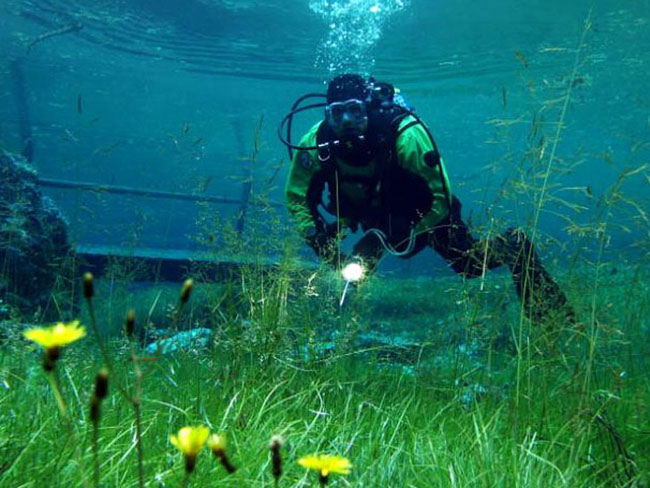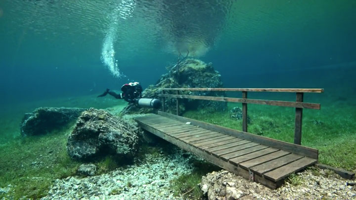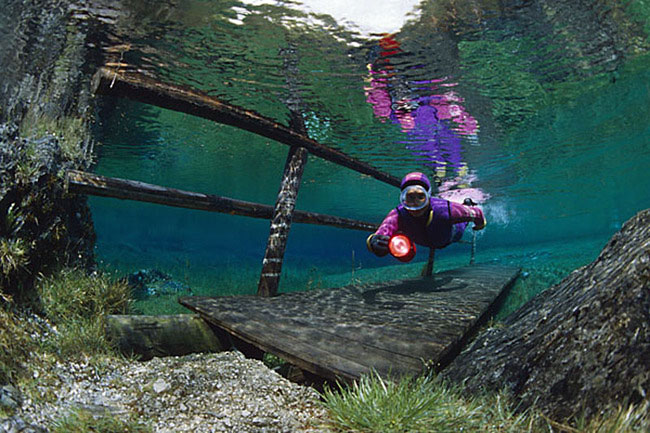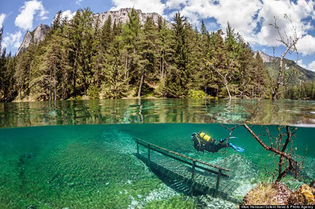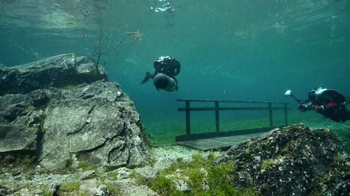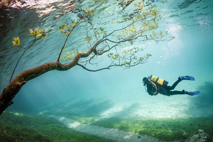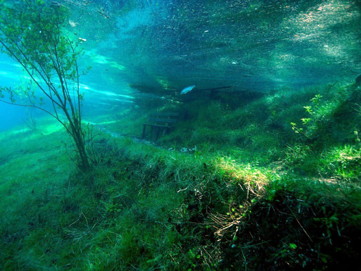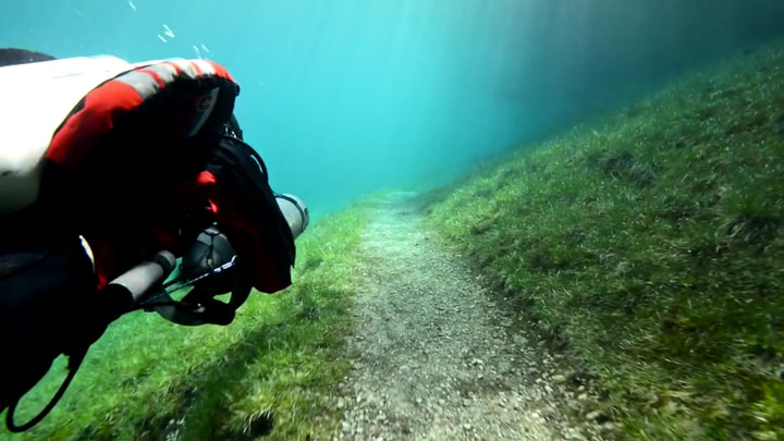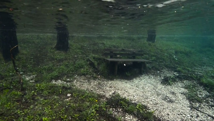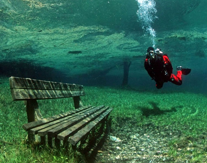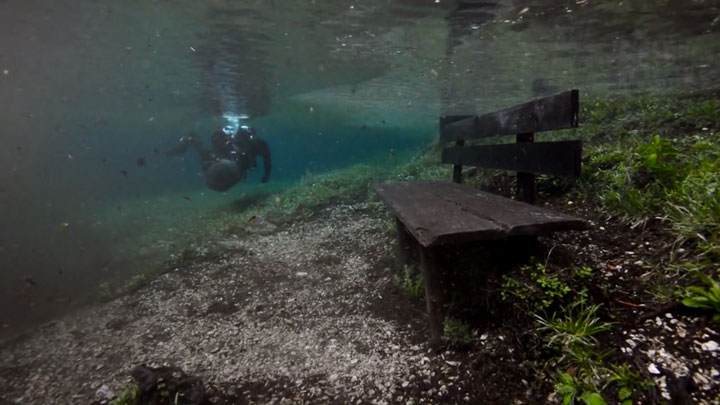 Récemment, Marc Henauer, photographe et plongeur autrichien, révèle un lac éphémère de la région de Styria en Autriche : le Grüner See (lac vert). Si l’hiver le site est une halte paysagère de randonnées, la fonte des glaciers du massif du Hochschwab au printemps le transforme en un lac. Autrement dit, un spot de plongée insolite, offrant une expérience hors du commun où la faune et la flore inédites se mêlent au mobilier et sentiers paysagers du parc. Regardez plutôt :