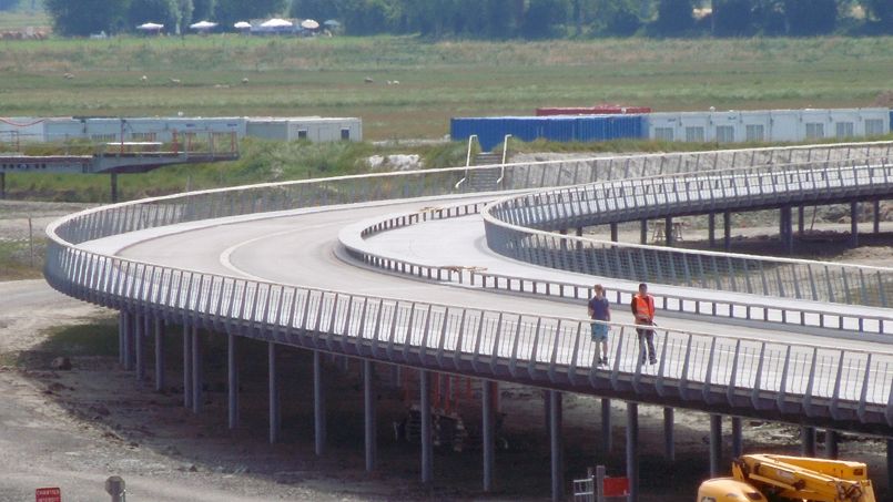 Si cette nouvelle étape marque une avancée majeure vers le rétablissement du caractère maritime du Mont-Saint-Michel, les travaux dans la baie ne sont pas finis pour autant : la réalisation de la large esplanade sur laquelle débouche le pont-passerelle doit être achevée fin septembre et conclura la construction du nouvel accès. Devrait suivre le début de la démolition de l’ancienne digue-route. Ce n’est qu’à l’été 2015, que ces gigantesques travaux, initiés en 2006 s’achèveront, après l’engloutissement d’un budget total de 230 millions d’euros, dont 184 millions d’investissements publics directs.