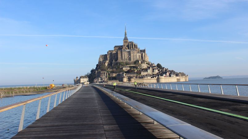 L’ouverture d’un pont-passerelle, exclusivement dédié aux piétons marque une nouvelle étape vers le rétablissement du caractère maritime du Mont-Saint-Michel.