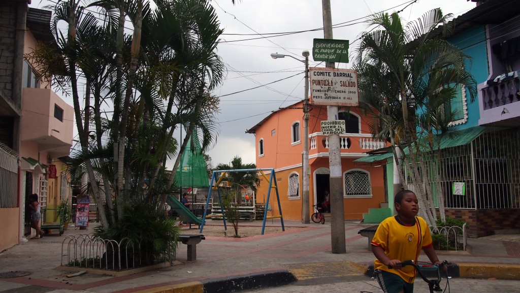 - Quartier consolidé issu de la « production sociale du logement » aujourd’hui menacé d’expulsion pour la construction d’un parc linéaire, Guayaquil, 2015.