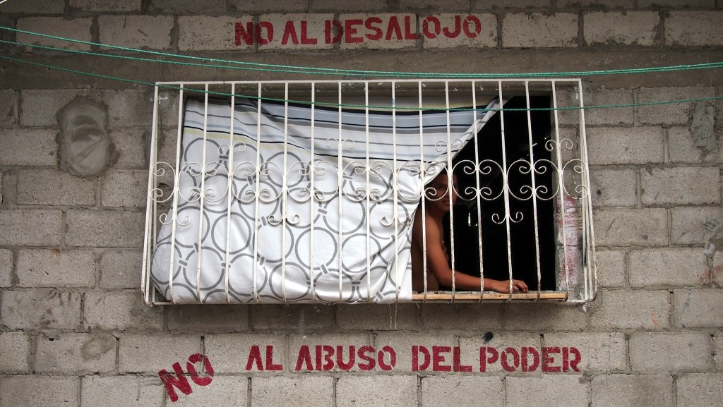 - Habitants opposés à la relocalisation de leur quartier pour la création du parc linéal « Non à l’expulsion, non aux abus de pouvoir », Guayaquil, 2015