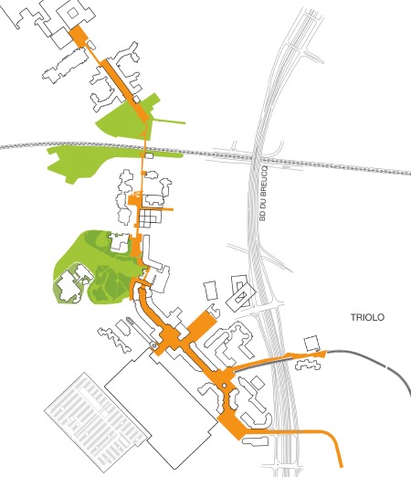 - une boucle active facilitant la compréhension des différents espaces : habitat, activités, circulation. Cette boucle favorisant les modes de déplacements doux dans un espace fortement marqué par l’emprise automobile.