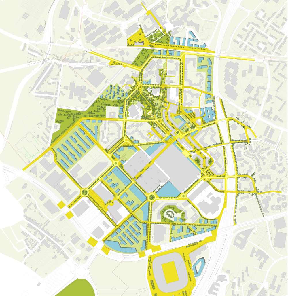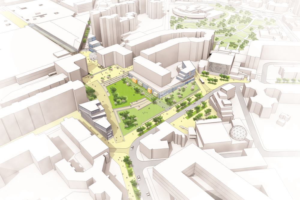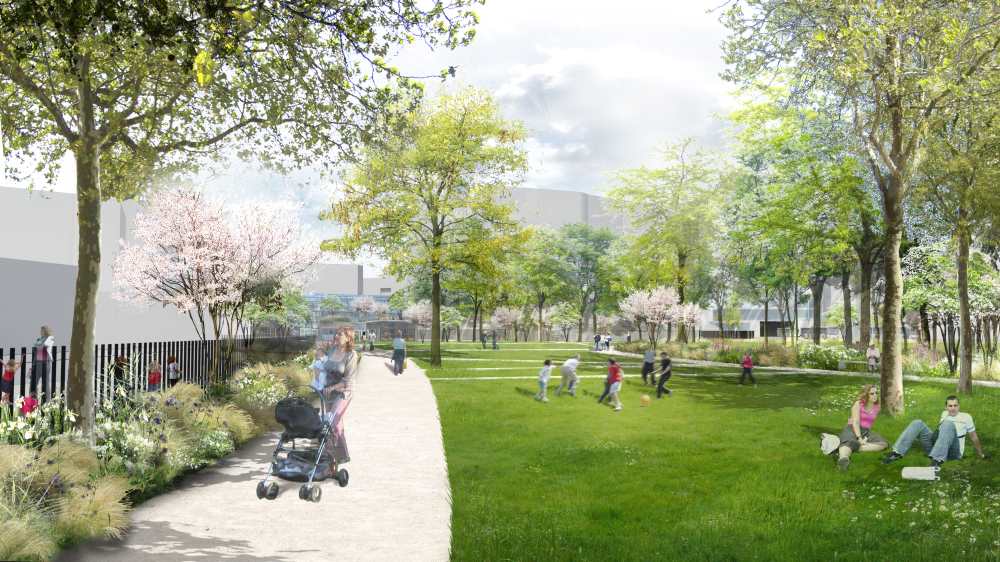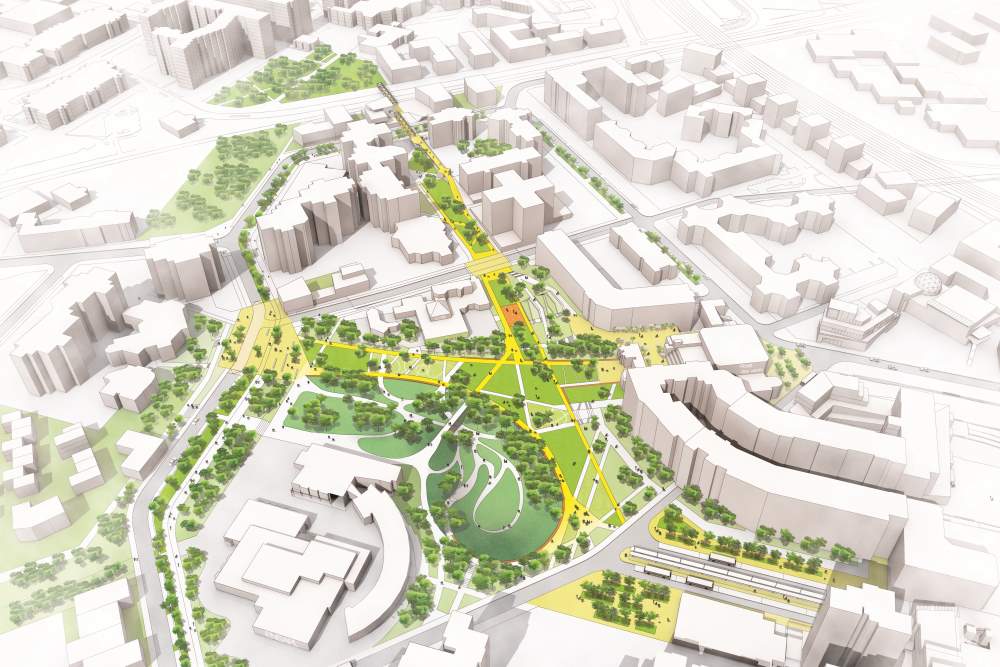 - la place verte. Enclavé et peu visible, le Forum Vert sera désenclavé et connecté au pôle d’échanges et sera en plein centre de l’axe citoyen. Il sera plus ouvert sur l’Ecole d’Architecture de Lille et la médiathèque.