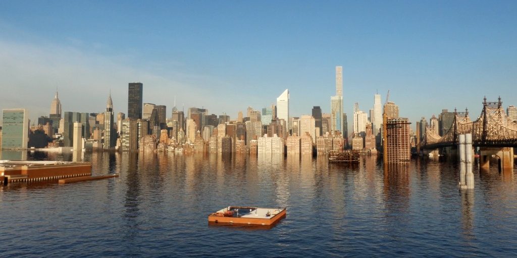 « Le GIEC, organisme intergouvernemental constitué d’experts sur l’évolution du climat, prévoyait une hausse moyenne des océans de 1 mètre d’ici 2100 : leur modèle sous-estimait la fonte des glaces. Pour James Hansen, ces 2° resteraient encore dangereux car il intègre dans ses récents modèles la fonte des glaces : il estime une hausse de 5 à 9m d’ici 2080. C’est demain. Cette hausse associée aux ondes de tempêtes (comme l’ouragan Sandy de 2012 à New-York) permettrait aisément de retrouver le même état d’inondation présenté dans le film. » précisent Claire & Max.